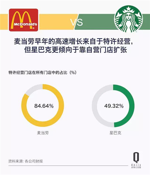麥當(dāng)勞靠的是特許經(jīng)營,而星巴克的幾萬家門店大多都是自營