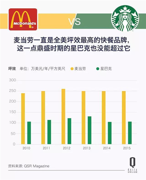 麥當(dāng)勞比星巴克的坪效高,但每個星巴克員工為公司創(chuàng)造的收益比麥當(dāng)勞要高