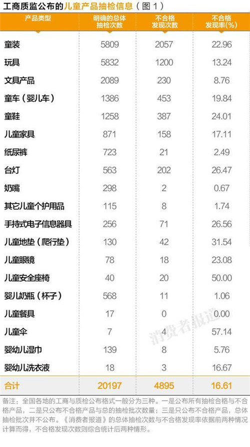 2017年5月,《消費者報道》通過梳理全國126個工商與質(zhì)檢部門10年來公開的20197條兒童產(chǎn)品抽檢數(shù)據(jù),作出不合格品牌黑榜警示,以及重點不合格產(chǎn)品類型的消費建議。