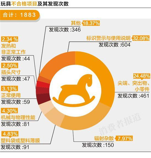 兒童產(chǎn)品的整體不合格發(fā)現(xiàn)率高達16.6%,美高樂、多喜愛、松堡王國、回力、步步高、青蛙王子、天堂傘等知名品牌均數(shù)次登上黑榜,兒童產(chǎn)品在標識、危險尖端與零件上存在更多的問題。