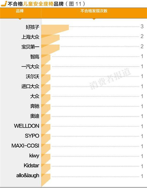 兒童安全座椅公開的抽檢次數(shù)相對較少,在鄭州工商2016年6月的一次抽檢中,WELLDON(惠爾頓)D307和kiwy SLF123QFIX登上黑榜,不合格理由是面料燃燒特性不合格。
