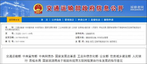 此外,新出臺的國家共享單車管理辦法,也意味著默許發(fā)展的政策紅利期正在成為過去時。8月2日,經(jīng)國務(wù)院同意,交通運輸部、中央宣傳部、中央網(wǎng)信辦、國家發(fā)展改革委、工業(yè)和信息化部、公安部、住房城鄉(xiāng)建設(shè)部、人民銀行、質(zhì)檢總局、國家旅游局10部門聯(lián)合出臺了《關(guān)于鼓勵和規(guī)范互聯(lián)網(wǎng)租賃自行車發(fā)展的指導(dǎo)意見》。
