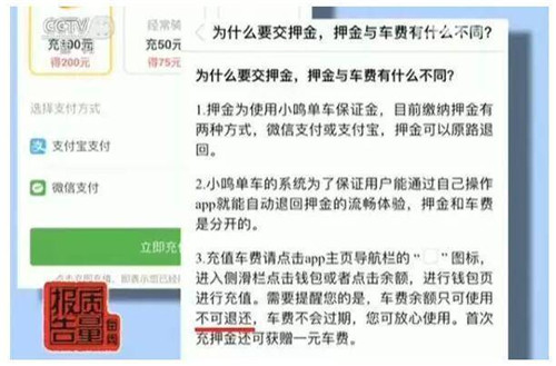3月份,北京市工商局共接到消費者有關(guān)共享單車服務(wù)類的訴求信息一共是860件,其中咨詢271件,消費者投訴589件,涉及內(nèi)容包括押金、余額退還遲遲不到賬;優(yōu)惠券不能正常使用;客服電話難打等。通過企業(yè)與消費者的快速和解以及工商部門的行政調(diào)解,共為消費者挽回了經(jīng)濟損失16.49萬元。