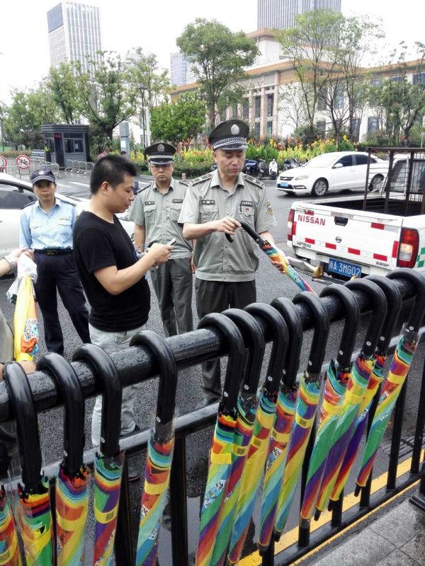 ?。ㄔ瓨祟}:共享雨傘現(xiàn)身杭城 一天就遭城管“下架”天水執(zhí)法中隊:投放存在占用公共設施的情況)
