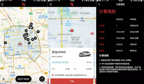 但是從用戶角度出發(fā),也有一些體驗(yàn)上的問(wèn)題,比如有時(shí)候按照地圖的指示根本找不到車,因?yàn)檫@輛車有可能停到了地下車庫(kù);有時(shí)候不注意會(huì)收到幾百塊的超區(qū)費(fèi)訂單,因?yàn)闊o(wú)意之間把車開(kāi)出了 EZZY 在北京以四環(huán)路為界的服務(wù)區(qū)域,等等。