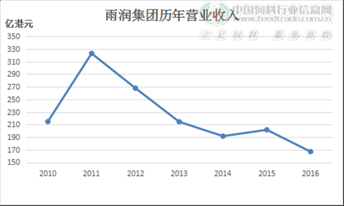 如上圖所示,自2012年開始,雨潤的收入開始大幅度跳水,2016年的營業(yè)收入基本相當(dāng)于2011年的一半,幾近腰斬。