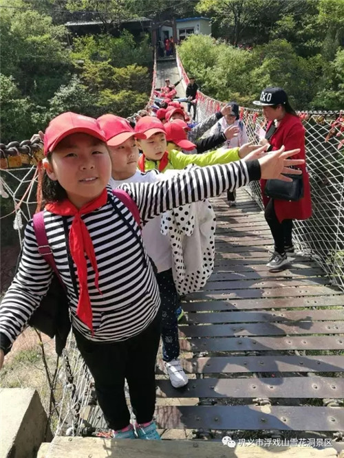 這群可愛(ài)的孩子真勇敢,站在這么高的吊橋站上拍照一點(diǎn)也不害怕。讓我想起來(lái)自己第一次走這座吊橋的時(shí)候,害怕的都不敢往下看,呵呵,慚愧啊