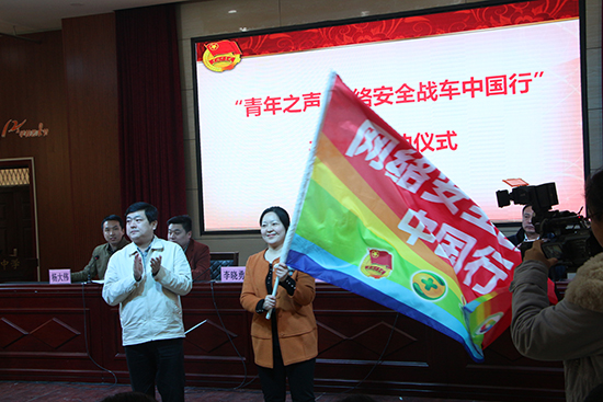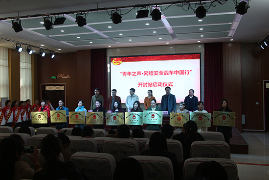儀式上,開封市集英中學可凌超校長致歡迎詞,隨后,與會領導為開封市10所網絡安全教育示范基地代表授牌。接著,團省委宣傳部李曉勇副部長將戰(zhàn)旗從鄭州站向開封站進行傳遞。