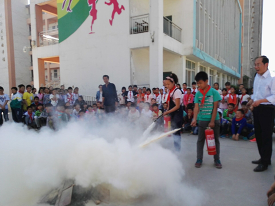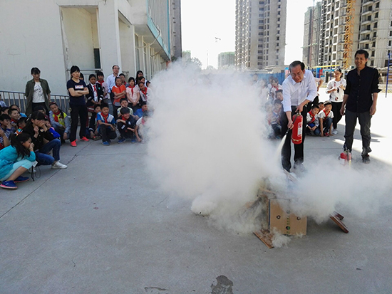 安全疏散演練完畢后,學(xué)校安全員為孩子們講解了校園防火、使用滅火器知識,以及火場逃生自救方法等消防安全常識,并現(xiàn)場指導(dǎo)師生干粉滅火器的使用方法。各班選出學(xué)生代表以及部分教師用滅火器進行了現(xiàn)場滅火,參與活動的師生嚴格認真地按照滅火方法進行著操作,燃燒的“火魔”瞬間被“消防員”撲滅,場上觀看的師生報以熱烈的掌聲。