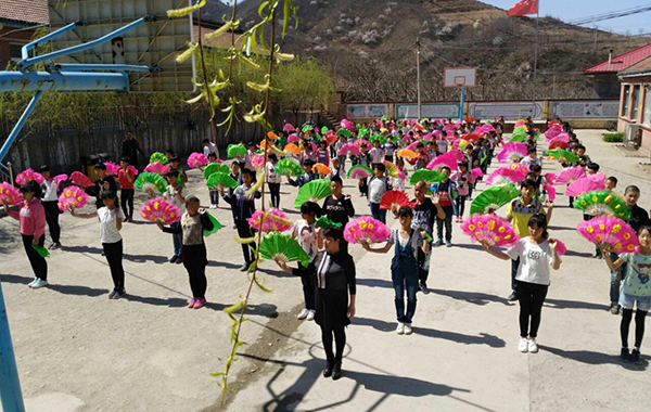 在村小工作了一段時(shí)間后, 趙銀鳳發(fā)現(xiàn)了一個(gè)問題:一個(gè)孩子的成長離不開家庭教育,學(xué)校百分之五十的學(xué)生都是留守兒童,整個(gè)村莊有很多留守婦女、空巢老人,這些家長的業(yè)余生活就是在聊天、打麻將中度過, 卻沒有時(shí)間關(guān)注孩子成長。于是她有了一個(gè)大膽的想法:把家長、村民也納入教育對象,利用寒暑假、休息日調(diào)動(dòng)家長們的積極性。于是她幫助村民成立老年協(xié)會、婦女學(xué)校、家長學(xué)校、秧歌隊(duì)等組織,組織孩子們、家長與村民節(jié)目表演等活動(dòng),推動(dòng)學(xué)習(xí)型家庭、學(xué)習(xí)型組織、學(xué)習(xí)型社區(qū)的建立,使學(xué)校成為整個(gè)村莊的文化中心;家、校、村三者結(jié)合,把村民帶到課堂,把課堂帶進(jìn)村莊,不僅提升了學(xué)生的能力和品質(zhì),提高了村民的生產(chǎn)生活技能,豐富了村民的文化生活,改變了村里白喜事大操大辦等陋習(xí)。