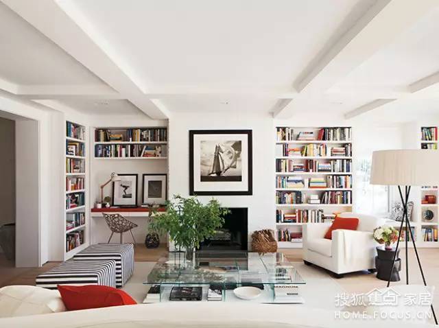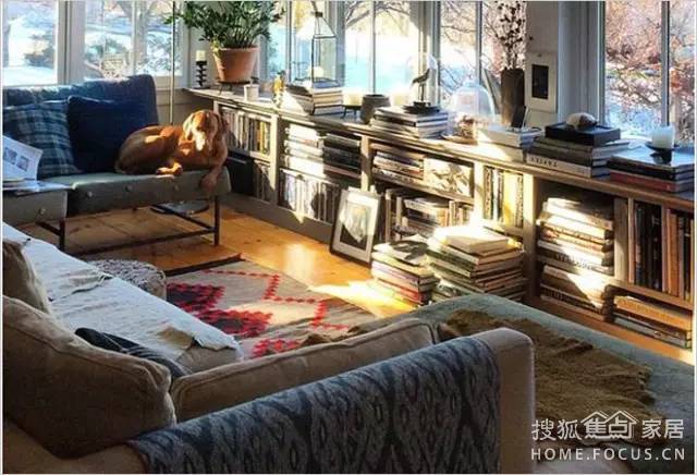 如果客廳有大落地窗,直接把客廳的沙發(fā)面向窗戶擺放。在窗戶前面擺放低矮的書架,看書看累了,就欣賞一下遠方的風景。
