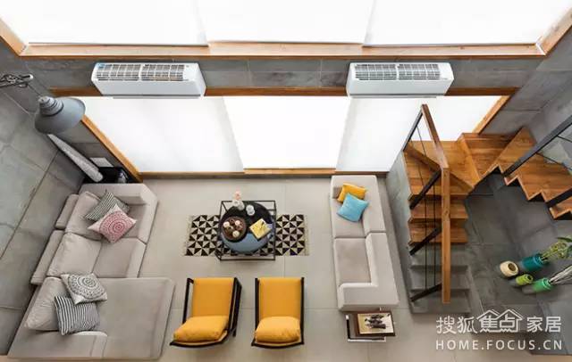 幾個沙發(fā)和壁爐圍在一起,看上去暖暖的。另外,壁爐也能起到輔助照明的作用。
