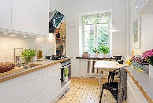 一般家庭的廚房多采用白色或淺色裝潢以及不銹鋼水槽的設(shè)置,色彩豐富的植物可以柔化硬朗的線條,為廚房注入一股生氣。通常廚房位于窗戶較少的朝北房間,由于陽光少,應(yīng)選擇喜陰的植物,如廣東萬年青和星點木之類。而且廚房是操作頻繁、物品零碎的工作間,煙和溫度都較大,因此不宜放大型盆栽,而吊掛盆栽則較為合適。