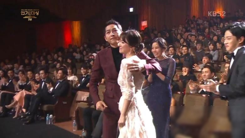 2016年KBS演技大賞最重要大獎(jiǎng)由《太陽(yáng)的后裔》宋仲基和宋慧喬獲得,兩人一上臺(tái)皆難掩激動(dòng)情緒,忍不住哽咽。宋慧喬對(duì)于獲得“最佳CP獎(jiǎng)”發(fā)表感言,“和喜歡的人一起領(lǐng)獎(jiǎng),真的很開(kāi)心”,在主持人全炫茂的詢問(wèn)之下,滔滔不絕地稱贊宋仲基就和劇中的劉時(shí)鎮(zhèn)一樣,“幽默、聰明、真誠(chéng)又溫柔”,宋仲基則回贊對(duì)方,“真的非常美麗又大方”,他們更現(xiàn)場(chǎng)重現(xiàn)了“什么血型”的撒嬌,彼此溺愛(ài)的眼神超吸睛。