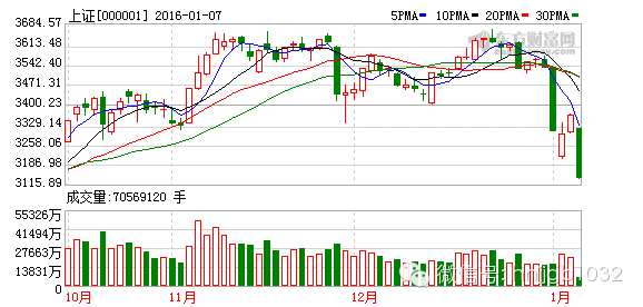 滬深300跌至5%,觸發(fā)熔斷機(jī)制。 根據(jù)有關(guān)規(guī)定,兩市交易將暫停15分鐘。截至發(fā)稿,滬指報3178.70點,下跌183.14點,跌幅5.45%,成交584.3億元。深成指報10941.82點,下跌783.06點,跌幅6.68%,成交796.3億元。創(chuàng)業(yè)板指報2286.70點,下跌181.67點,跌幅7.36%,成交190.5億元。