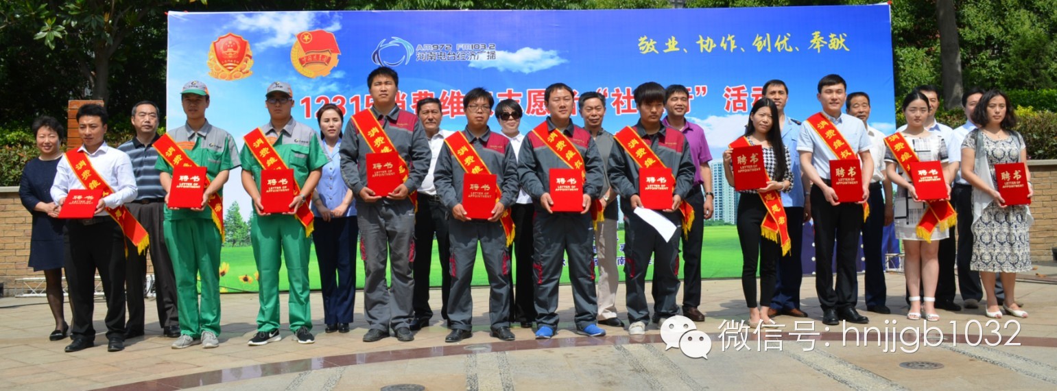 團省委城市青年工作部殷世洲副部長、河南經(jīng)濟廣播欣悅副總監(jiān)、省工商局相關(guān)處室領(lǐng)導為12位“志愿者”朋友們頒發(fā)了聘書。
