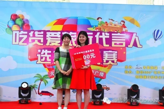 獲得第一名的選手成功簽約《吃貨愛旅行》成為代言人,由河南經(jīng)濟廣播副總監(jiān)欣悅女士上臺進行了頒獎儀式。