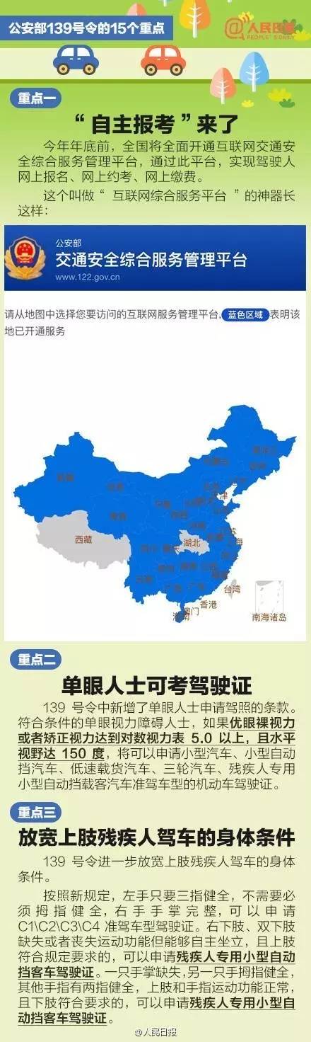 4月1日起,公安部《機(jī)動車駕駛證申領(lǐng)和使用規(guī)定》將正式實(shí)施。今后,駕駛?cè)丝荚嚳梢跃W(wǎng)上自主預(yù)約,駕駛證在全國可以異地年審,每年提交駕駛證身體條件證明的年齡由60周歲改為70周歲……