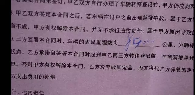 購車合同所顯示的公里數