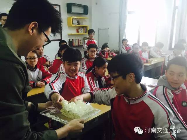 班主任李少鋒老師很激動(dòng),他說(shuō),沒(méi)想到一條小小的微信,竟然真的請(qǐng)到了河南交通廣播主持人來(lái)給同學(xué)們送蛋糕,他說(shuō),這樣的班會(huì)開(kāi)得很有意義,讓孩子們學(xué)會(huì)分享,是與同學(xué)們心貼心的交流。