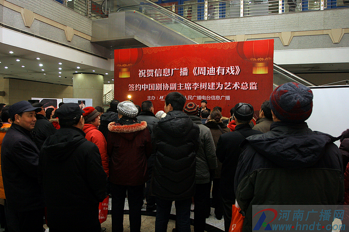 1月17日上午,河南人民廣播電臺(tái)《周迪工作室》掛牌儀式及中國(guó)戲劇家協(xié)會(huì)副主席李樹(shù)建先生受聘《周迪有戲》欄目藝術(shù)總監(jiān)簽約儀式在廣播大廈一樓大廳舉行。河南人民廣播電臺(tái)副臺(tái)長(zhǎng)李海軍、河南人民廣播電臺(tái)信息廣播總監(jiān)李金鋒出席儀式。