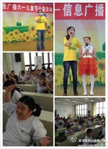 信息廣播三位總監(jiān)與愛心人士和孩子們一起做游戲,玩得不亦樂乎。