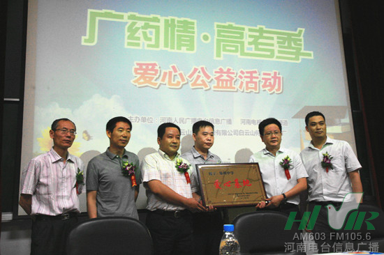 6月3號(hào),河南電臺(tái)信息廣播聯(lián)合河南電視臺(tái)第九頻道、廣州白云山何濟(jì)公制藥廠,在鄭州大學(xué)共同舉辦了以“愛心助高考 迎接新人生”為主題的“廣藥情 高考季”系列愛心公益活動(dòng)。