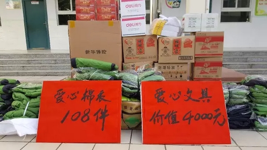 這次活動(dòng)我們聯(lián)合愛(ài)心企業(yè)捐助了108套棉衣、價(jià)值4000余元的文具和生活用品。