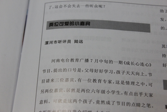 這期談教育的節(jié)目之所以吸引人,兩位小學(xué)生增色不少。聽了這期節(jié)目,大家還能感覺出來(lái),女主持人雖然年輕,卻非常用心,非常給力,非常真誠(chéng),對(duì)辦好節(jié)目,實(shí)在是功不可沒。