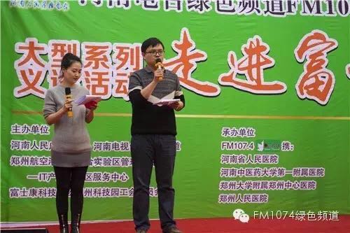 本次活動由河南人民廣播電臺主辦,河南電臺綠色頻道FM107.4、河南電視臺新農(nóng)村頻道、鄭州航空港經(jīng)濟(jì)實驗區(qū)管理委員會IT產(chǎn)業(yè)園社區(qū)服務(wù)中心、富士康科技集團(tuán)鄭州科技園工會委員會、河南省人民醫(yī)院,河南中醫(yī)藥大學(xué)第一附屬醫(yī)院,鄭州大學(xué)附屬中心醫(yī)院、鄭州人民醫(yī)院聯(lián)合承辦。