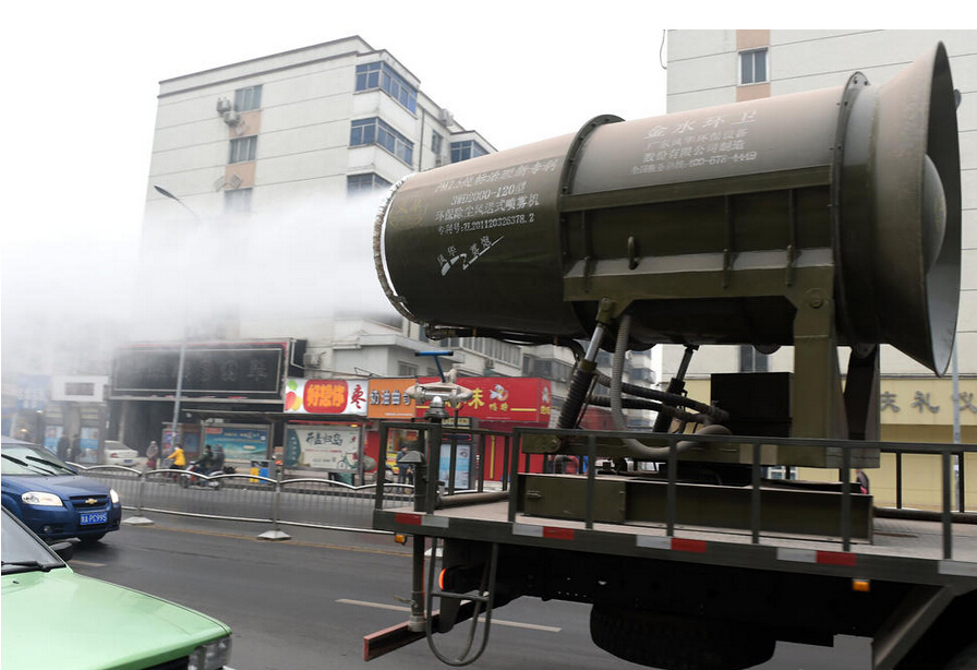 鄭州街頭現(xiàn)“防霾神器”霧炮車