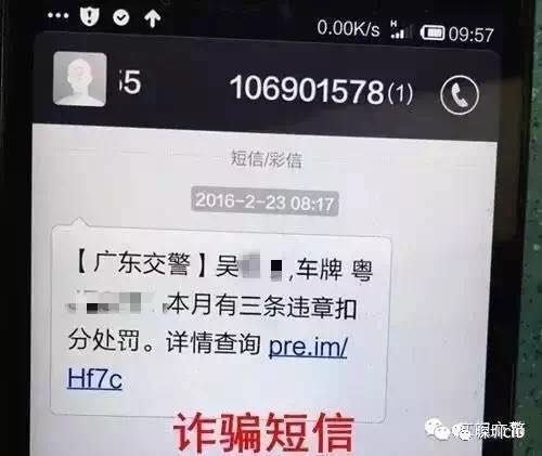 喏,下面這條短信就是詐騙短信