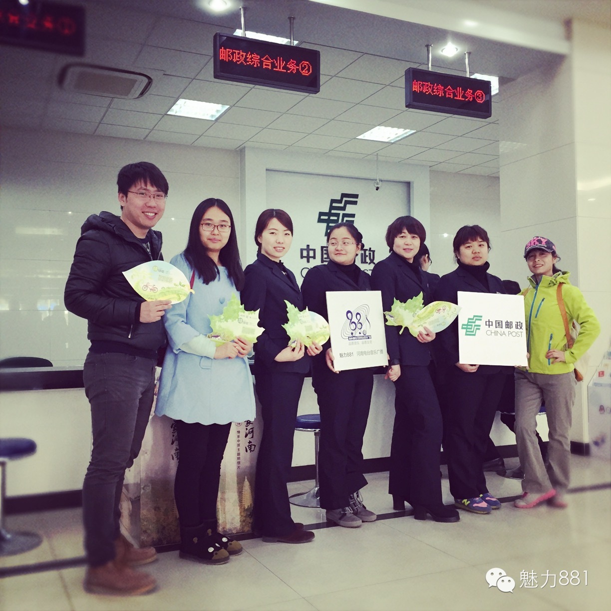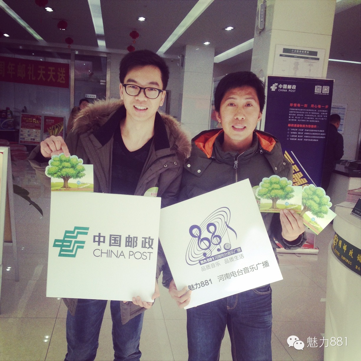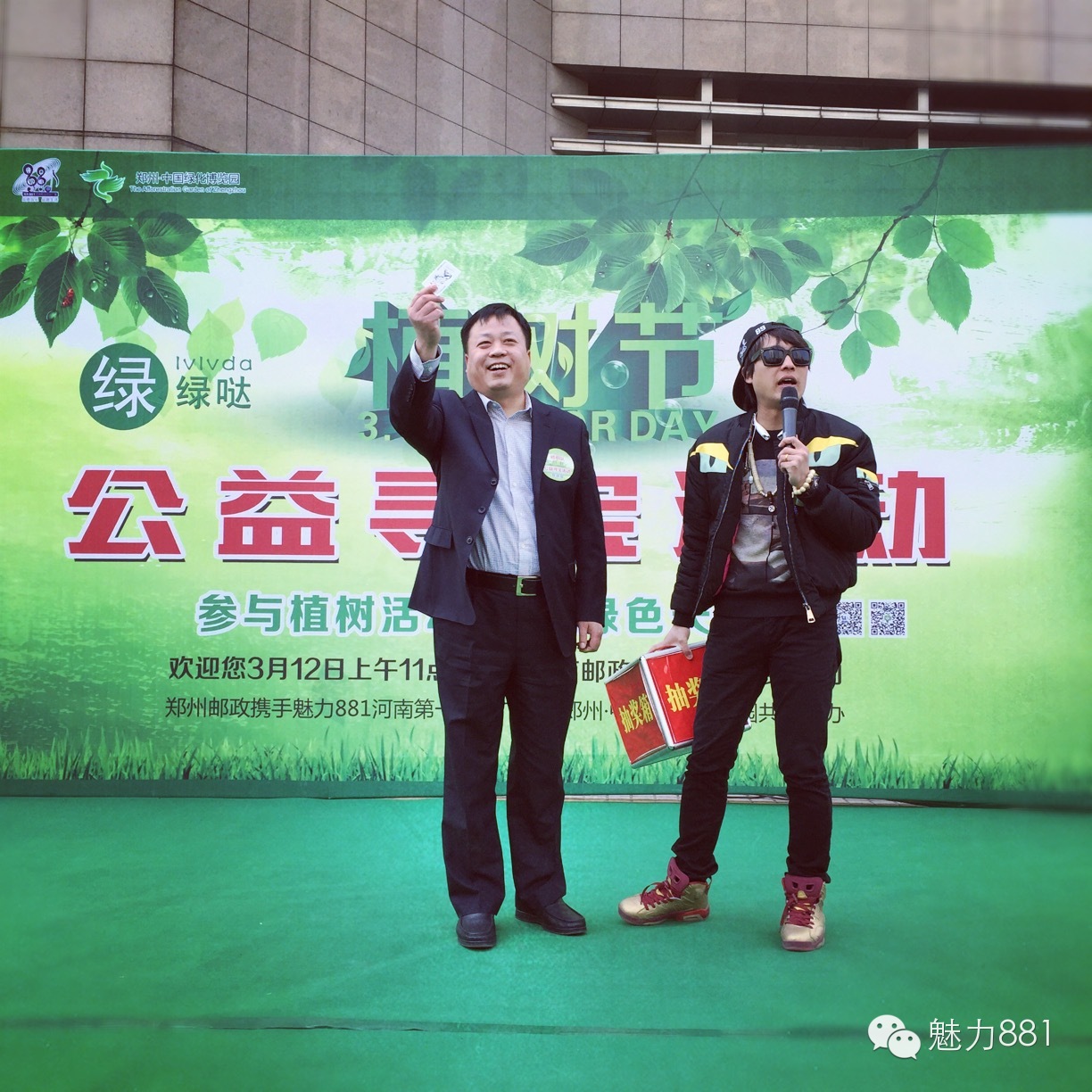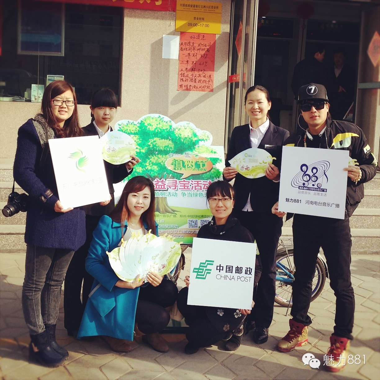 3月12日植樹節(jié),魅力881河南第一音樂廣播攜手鄭州郵政一同打造的“綠色尋寶大作戰(zhàn)”公益活動圓滿舉行!今天有四位DJ帶領四隊聽眾前往市區(qū)指定郵政網(wǎng)點,尋找本次活動限量定制的環(huán)保明信片。首先要為獲勝的小伙伴鼓掌,同時也要感謝所有參與本次活動的親們,你們都棒棒噠!本次公益活動的每一位參與者都是綠色環(huán)保小戰(zhàn)士,有你們在,綠城的樹一定會更綠,天一定會更藍!最后要特別感謝本次活動合作方鄭州郵政、綠博園的大力支持,再次感謝魅力881聽眾的參與!