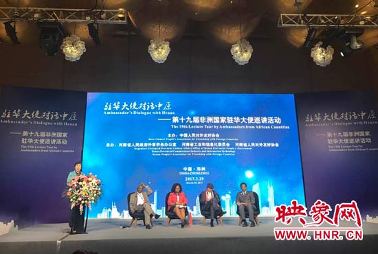 映象網(wǎng)快訊(記者 王邵怡 文/圖)3月29日,五位從非洲五個(gè)國(guó)家遠(yuǎn)道而來(lái)的朋友來(lái)到鄭州,參加在這里舉辦的“駐華大使對(duì)話(huà)中原—第十九屆非洲駐華大使巡講活動(dòng)”。這五位分別是來(lái)自贊比亞、納米比亞、津巴布韋、埃塞俄比亞和南非的駐華大使及參贊。他們到河南來(lái)推介自己的國(guó)家,希望連接起河南與非洲的經(jīng)貿(mào)往來(lái)與合作。