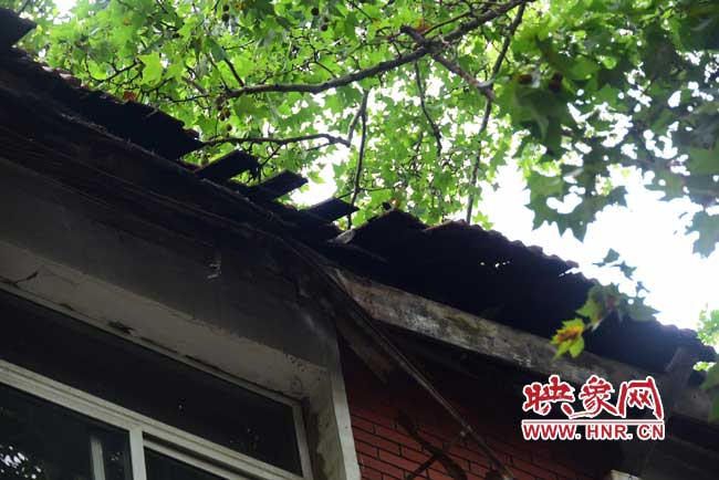 在三樓,河南省第一建筑工程集團(tuán)有限責(zé)任公司物業(yè)管理分公司兩位工作人員稱,房頂不安全,他們早在兩個月前向上級部門打了報告。