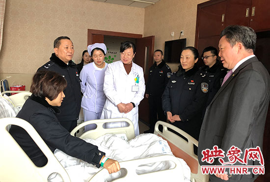 鄭東分局局長張予西等領導同志看望在病床上的宋穎穎
