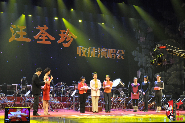 本次成為汪荃珍徒弟的分別是許昌市豫劇團(tuán)的何艷芳和三團(tuán)的韓亞冰,在拜師儀式上,著名戲劇評(píng)論家荊樺用“常大師的好學(xué)生、舞臺(tái)上的好演員、劇團(tuán)里的好團(tuán)長(zhǎng)、朋友們的好朋友”來形容汪荃珍,汪荃珍自己也說,要銘記常香玉大師的教誨——“先做人,后演戲,戲比天大”,為戲曲事業(yè)培養(yǎng)更多優(yōu)秀人才。讓人印象深刻的是,汪荃珍沒有按照傳統(tǒng)的形式接受弟子的行禮,而是與弟子攜手共同向全場(chǎng)觀眾三鞠躬致意,贏得了觀眾們熱烈的掌聲,之后,汪荃珍與兩位弟子一起表演了《香魂女》當(dāng)中的經(jīng)典選段,將整場(chǎng)演出的氣氛推向了高潮。