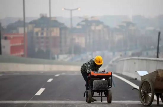 一位工人在橋面上施工