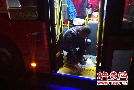 映象網(wǎng)訊(記者 燕子丹 文/圖)13日夜間,降雪如約而至。鄭州公交二公司全面啟動(dòng)惡劣天氣應(yīng)急預(yù)案,應(yīng)急工作領(lǐng)導(dǎo)小組于13日夜間分赴各個(gè)公交場(chǎng)站,對(duì)公交車(chē)輛進(jìn)行安全檢查,在場(chǎng)區(qū)、站點(diǎn)等地鋪灑融雪劑,保證車(chē)輛第二天能夠安全上路。
