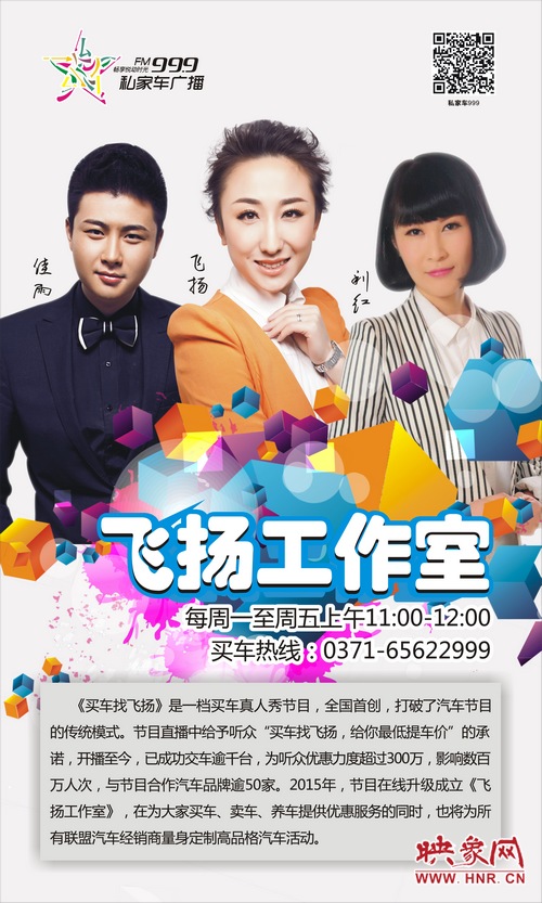 《買車找飛揚》是河南電臺私家車999于2013年1月29日開設的一檔為受眾提供全省最低買車優(yōu)惠的服務類節(jié)目,節(jié)目播出頻率為FM99.9,每個工作日上午的11:30-12:00直播。