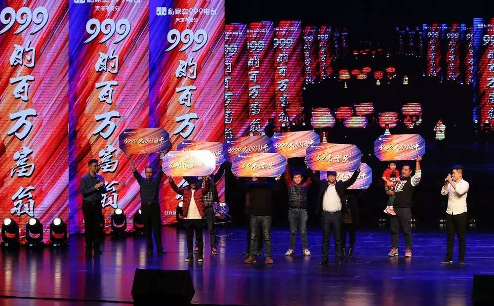 私家車999百萬富翁年終盛典,主播們精彩的晚會(huì)表演是一大亮點(diǎn),同樣更亮的是私家車999為大家?guī)淼亩噍喅榇螵?jiǎng)環(huán)節(jié),汽車、金條、油卡、購物卡……全部都在現(xiàn)場(chǎng)送出。