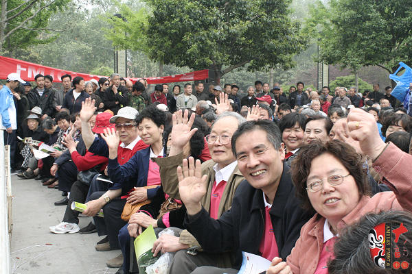 4月17日上午,在位于洛陽(yáng)市中心、以體現(xiàn)周朝文化為主題的周王城廣場(chǎng),“周公營(yíng)建洛邑”雕塑旁,主辦方舉辦了一場(chǎng)別開(kāi)生面的戲曲演唱會(huì)。來(lái)自鄭州、洛陽(yáng)兩地的豫劇名家張?jiān)聵s、曾廣蘭、趙曉梅、王藝紅,著名演員徐俊霞、陳大華、劉亞林、曲韻、劉海功、沈萍,梨園春明星擂主張艷紅、謝憲笙等為來(lái)自全省各地的戲曲廣播《戲迷俱樂(lè)部》百余位戲迷和現(xiàn)場(chǎng)的廣大觀眾奉獻(xiàn)了精彩的戲曲唱段。藝術(shù)家們演唱的《洛陽(yáng)橋》、《秦雪梅》、《七品芝麻官》、《對(duì)花槍》、《拷紅》、《收姜維》、《朝陽(yáng)溝》、《倒霉大叔的婚事》、《小白鞋說(shuō)媒》、《紅菊》等不同劇種、不同流派、不同行當(dāng)?shù)哪捴巳丝诘某唬┑糜^眾一陣又一陣的掌聲,河南戲曲廣播主持人媛媛、李鋮表演的雙簧妙趣橫生,引得觀眾樂(lè)不可支。