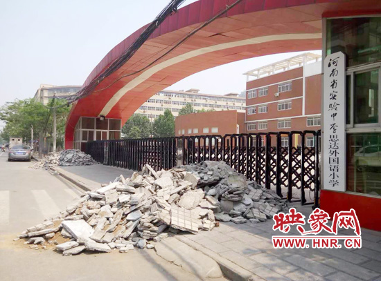 25日下午,映象網(wǎng)記者來到河南省實驗中學思達外國語小學門口發(fā)現(xiàn),前幾天已經(jīng)清理干凈的校門口再次被建筑垃圾所包圍。
