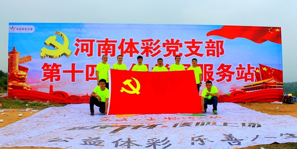 參賽者路過“河南體彩黨支部第十四小組黨員服務(wù)站”