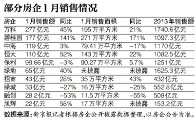 記者了解到,今年春節(jié)較早,樓盤實(shí)際可銷售時(shí)間較短,1、2月全國(guó)樓市延續(xù)淡季走勢(shì),如果將2013年“藏”下的業(yè)績(jī)刨除,多數(shù)龍頭房企其實(shí)銷售低迷。