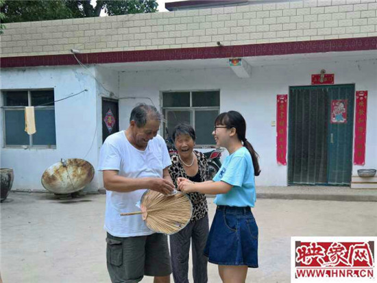 不多時(shí),村委會的辦公室中就擠滿了聞?dòng)嵍鴣淼拇迕?,志愿者們一一為他們測量血壓,不少村民離開前邀請志愿者們道“孩子,來俺家,給你們下碗好吃的撈面條”,更多的村民測完血壓后并未立即離去,而是留下與志愿者們親切交談,村民的質(zhì)樸與志愿者的奉獻(xiàn)精神在這一間小小的辦公室中緩緩交融,在炎炎夏日里帶來些許清涼。