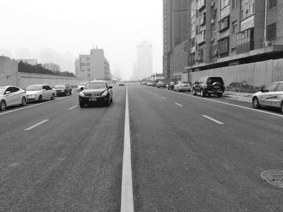 昨日上午11點30分,記者驅(qū)車從東明路緯四路口右轉(zhuǎn)向東進(jìn)入緯四路(東明路未來路段)(如右圖),只見嶄新的瀝青路面已完全鋪好,道路為雙向四車道,東西方向已經(jīng)有很多機動車開始從這里“嘗鮮”。
