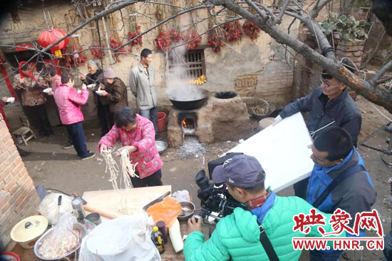 12月1日,公益微電影《母愛的味道》在襄城縣雙廟鄉(xiāng)虎張村開機拍攝。影片以蒙太奇手法推進:母親呵護襁褓中“嗷嗷”待哺的兒子,畫外音傳出的卻是6歲兒子的“嬉鬧聲”;6歲兒子撒嬌的“表情”與25歲時感激的“神情”蒙太奇手法切換;25歲時兒子“埋頭喝下一口面湯”與40歲時兒子“抬頭咽下一口面湯”蒙太奇手法切換等表現(xiàn)手法,使得故事溫暖而感人。