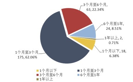 本周,1個月(含)以下期理財產(chǎn)品發(fā)行數(shù)為18款,較上期報告減少5款,平均預期收益率為3.46%,和上期報告持平;1個月至3個月(含)期理財產(chǎn)品發(fā)行數(shù)為175款,較上期報告減少84款,平均預期收益率為4.13%,較上期報告上升6個基點;3個月至6個月(含)期理財產(chǎn)品發(fā)行數(shù)為63款,較上期報告減少40款,平均預期收益率為4.36%,較上期報告上升9個基點;6個月至1年(含)期理財產(chǎn)品發(fā)行數(shù)為24款,較上期報告減少25款,平均預期收益率為4.15%,較上期報告下滑16個基點;1年以上期理財產(chǎn)品發(fā)行數(shù)為2款,較上期報告減少3款,平均預期收益率為4.93%,較上期報告上升8個基點。
