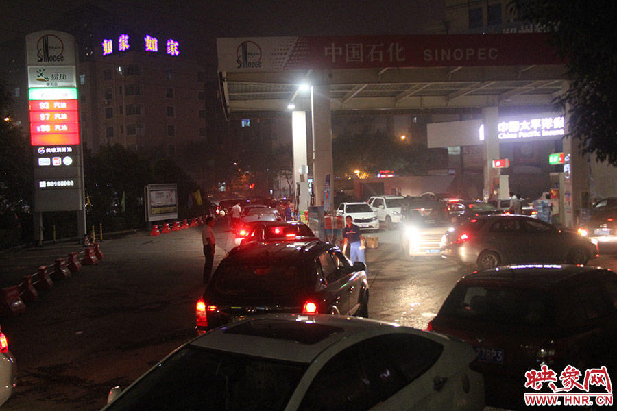 映象網(wǎng)訊(記者 駱瓊 文圖)據(jù)國家發(fā)改委網(wǎng)站消息,自2013年7月19日24時起,汽、柴油價格每噸分別上調(diào)325元、310元,測算到零售價格90號汽油和0號柴油平均每升分別漲0.24元和0.26元。7月19日下午10時,記者來到鄭州市農(nóng)業(yè)路與經(jīng)三路一家加油站發(fā)現(xiàn),很多有車一族都趁著油價上漲之前到臨近加油站“扎堆”加油。